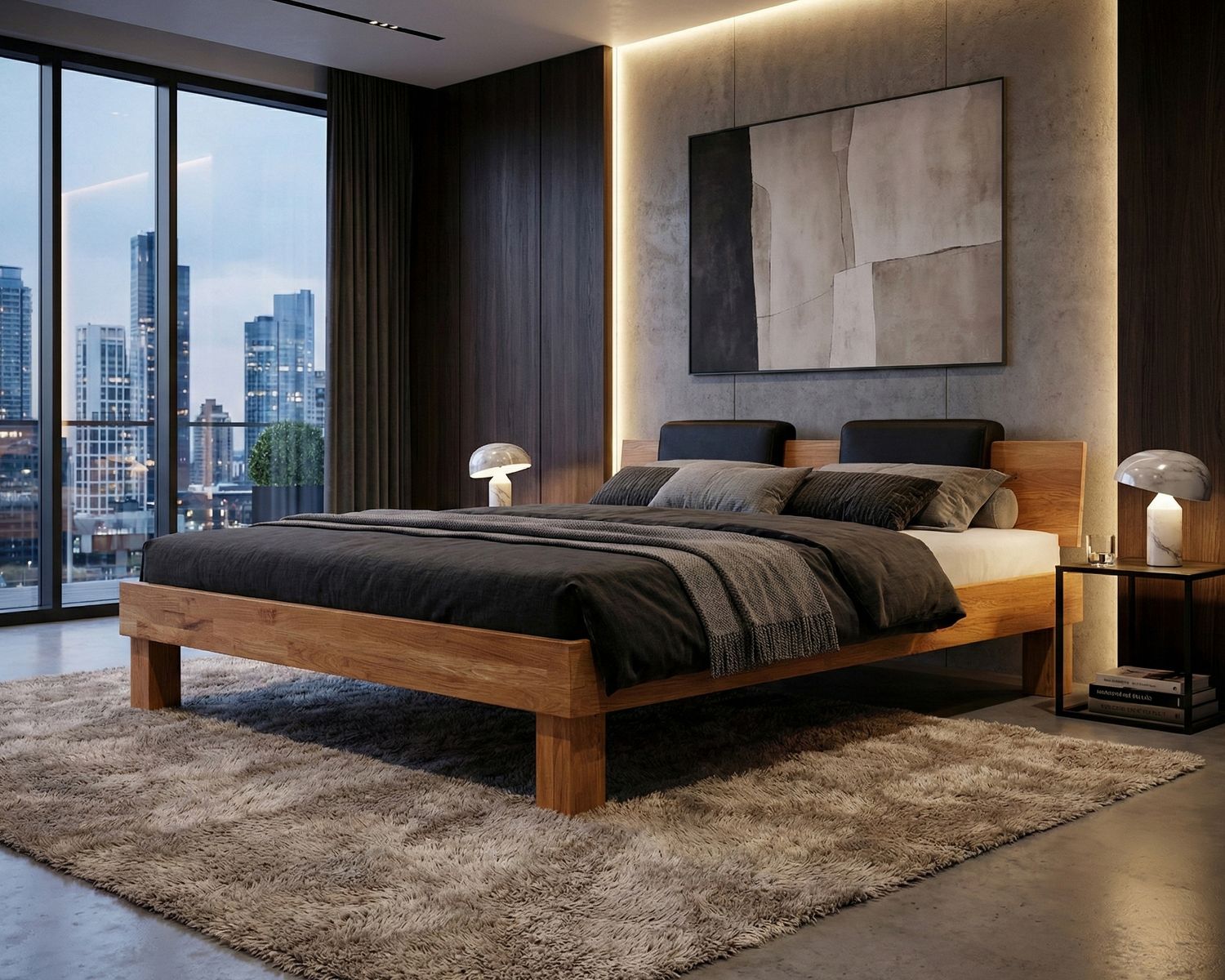 Das Buona Vita besteht aus 20 mm dickem, massivem Eichenholz, das seine natürliche, warme Ausstrahlung und Haptik bewahrt. Die Details in der Verarbeitung dieses Betts reflektieren eine akribische Aufmerksamkeit für Qualität und Design.