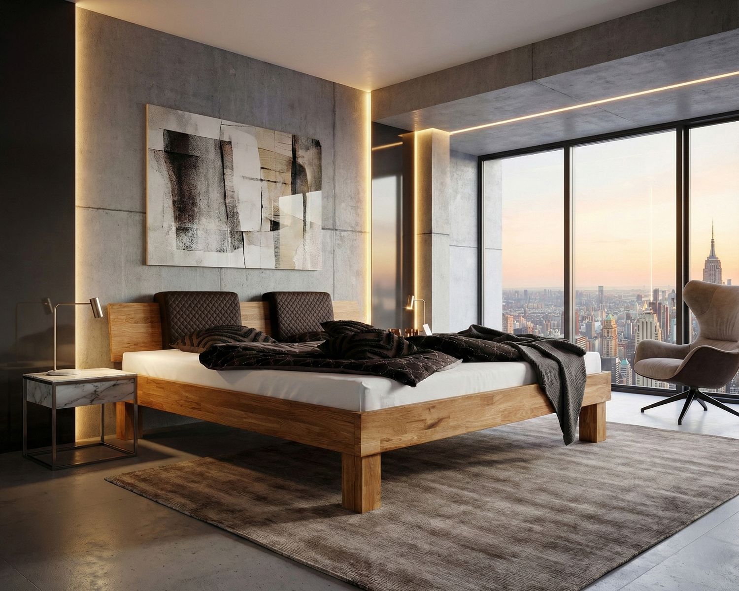 Einfachheit trifft auf Eleganz in unserem Massivholzbett »Buona Vita« - eine Oase der Ruhe für Ihre entspannten Nächte. Dieses Bett ist aus hochwertiger Wildeiche gefertigt und besticht durch sein modernes, minimalistisches Design und seine preisgünstige Qualität.