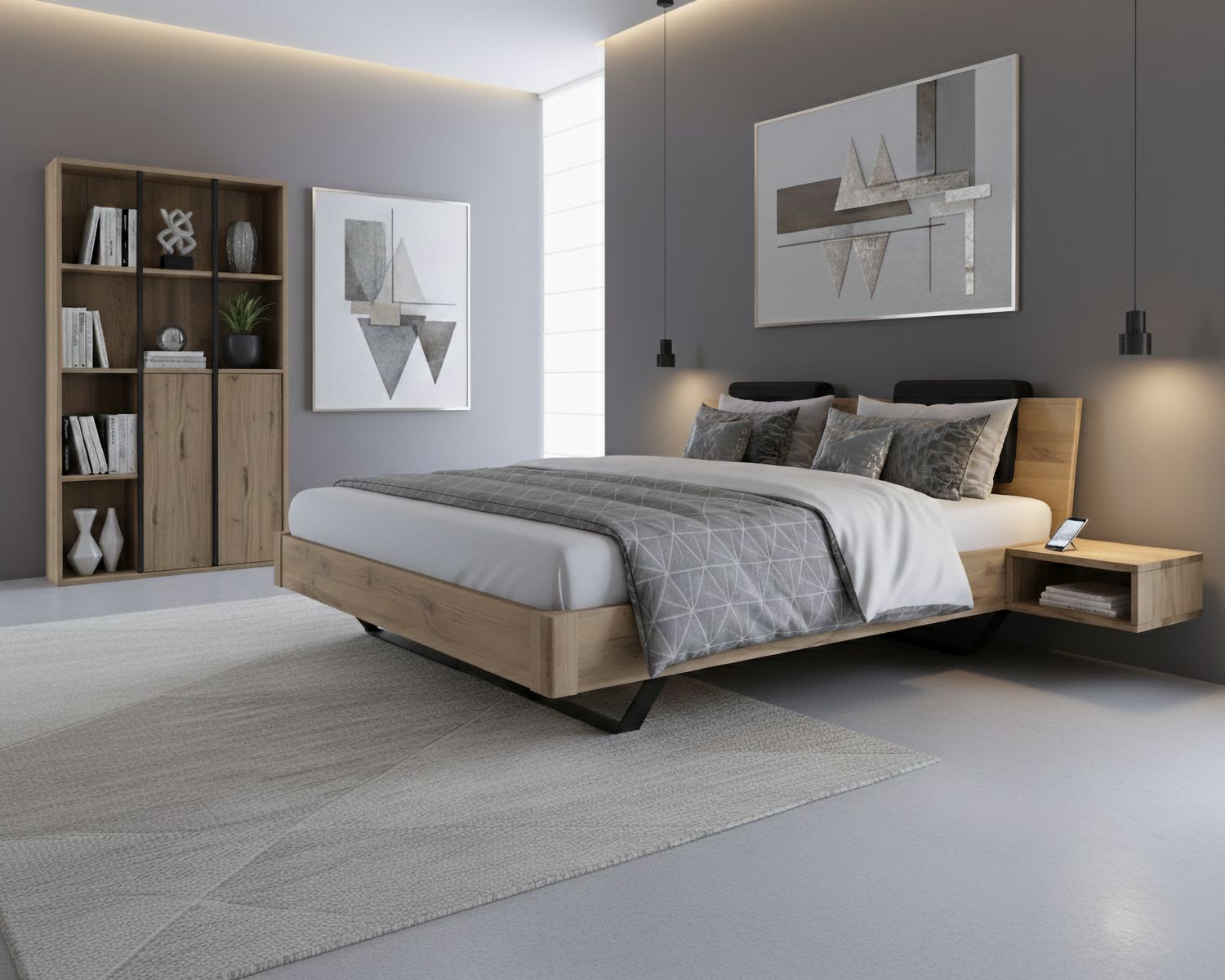 Die eindrucksvolle Maserung der Wildeiche gibt dem Bett einen einmaligen Charakter.